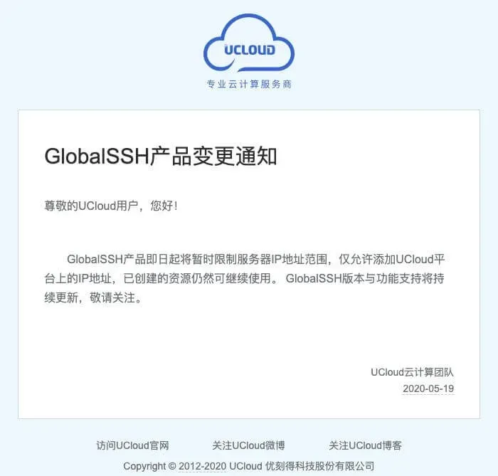 最新更新 UCloud云计算团队于2020年5月19日发布产品变更通知,今后只有UCloud旗下的服务器可以使用这个功能了。