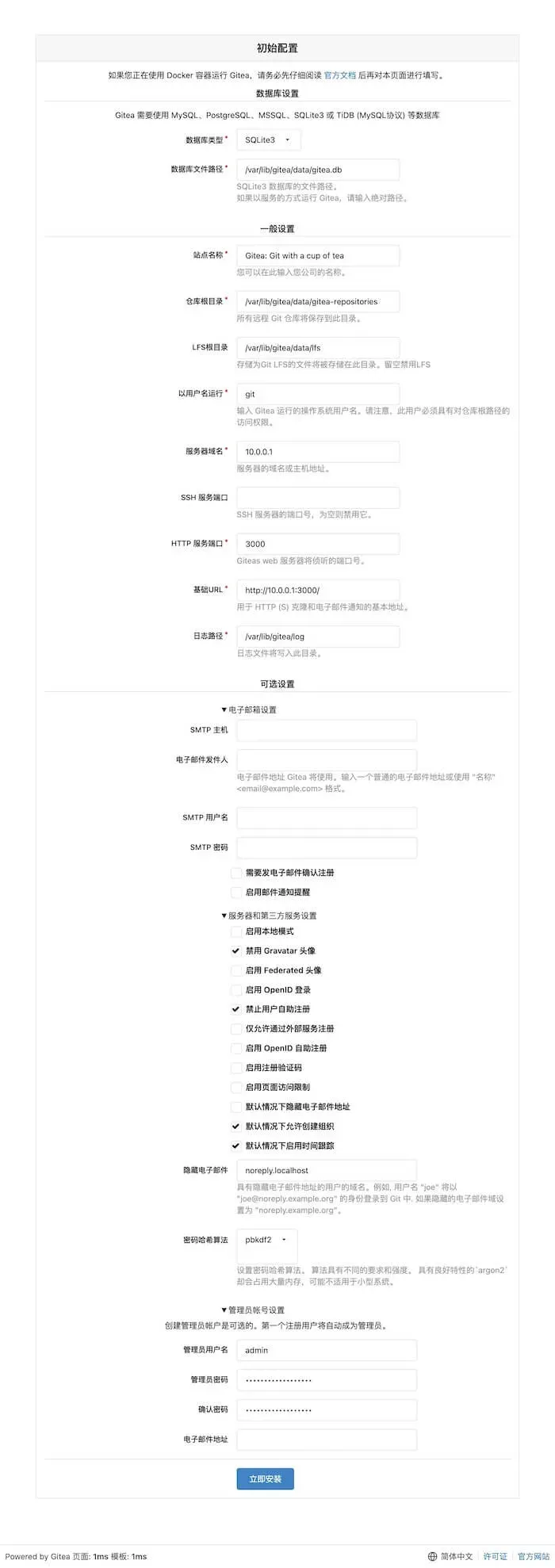 虽然Gitea很多配置还要修改文件+重启服务,可能没有那么方便,但是他较小的资源占用和性能需求,拿来当做个人使用的服务的话还是比较适合的。